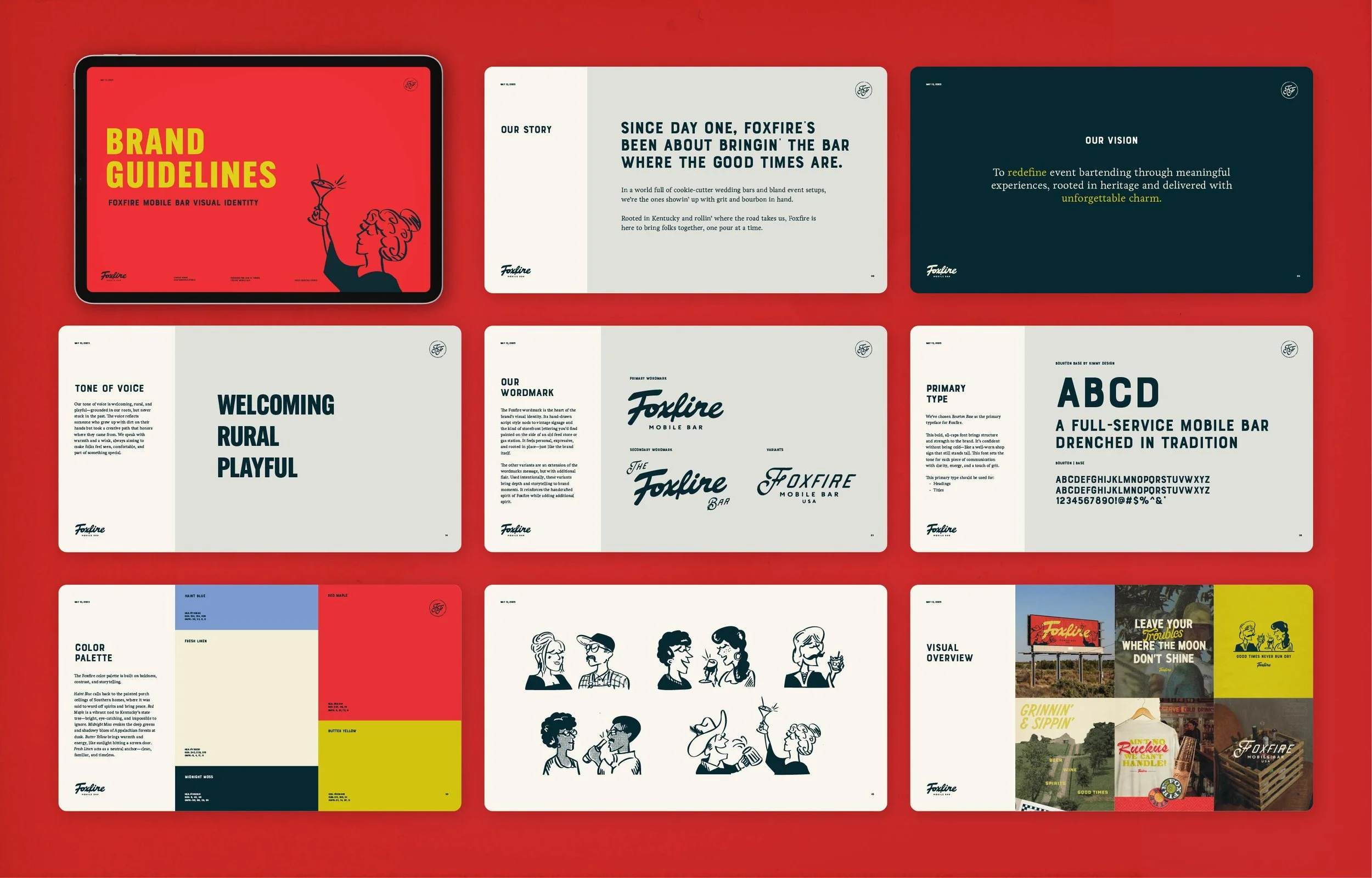 Foxfire came to Fated with a clear ambition: create a mobile bar that carries the warmth of Appalachian folklore into contemporary events. In a market crowded with sameness, the brand needed presence from day one. Through strategic positioning and a heritage-driven visual system, Foxfire launched as a distinct mobile bar experience balancing balancing heritage and hospitality.